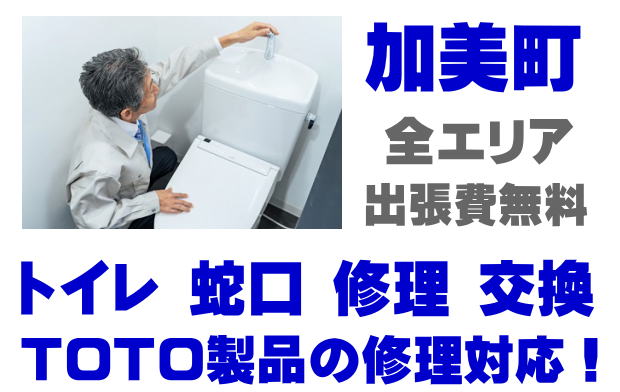 加美町でTOTO製品の修理業者をお探しなら当社までお気軽にお問い合わせください。トイレ便器タンクの故障、便座の修理、蛇口やシャワーの水漏れなどTOTO製品に関するトラブルなら何でもご相談ください。