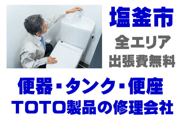 塩釜市でTOTO製トイレの修理業者をお探しなら当社までお気軽にお問い合わせください。トイレ便器の水漏れ、タンクの故障、便座の修理などTOTO製トイレに関するトラブルなら何でもご相談ください。